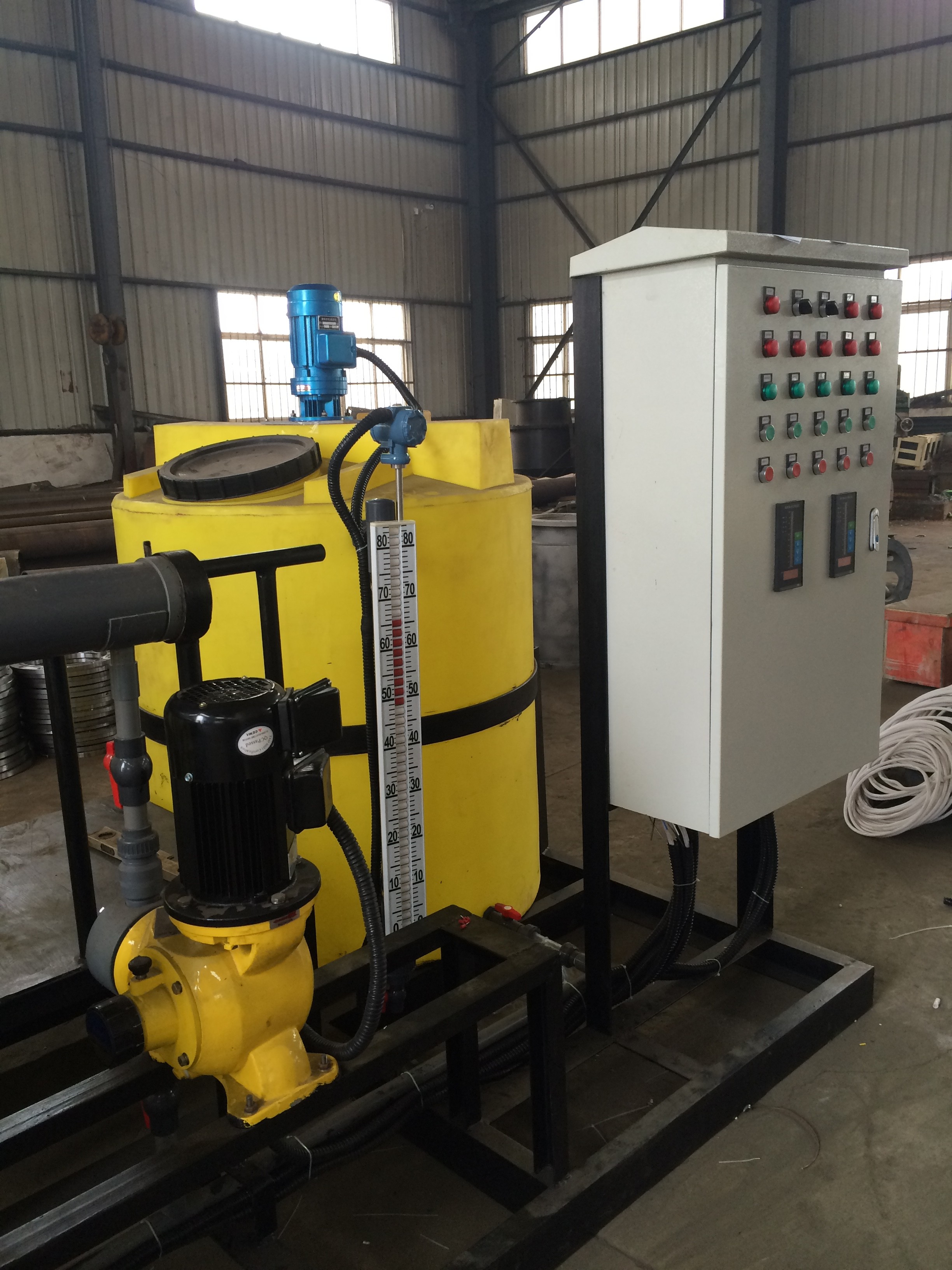 加藥過程可手動操作,也可通過PC機、磁翻板液位計、PH計、行程控制器、變頻器等各種電器、儀表、使加藥裝置成為機電一體化產品、實現自動控制。